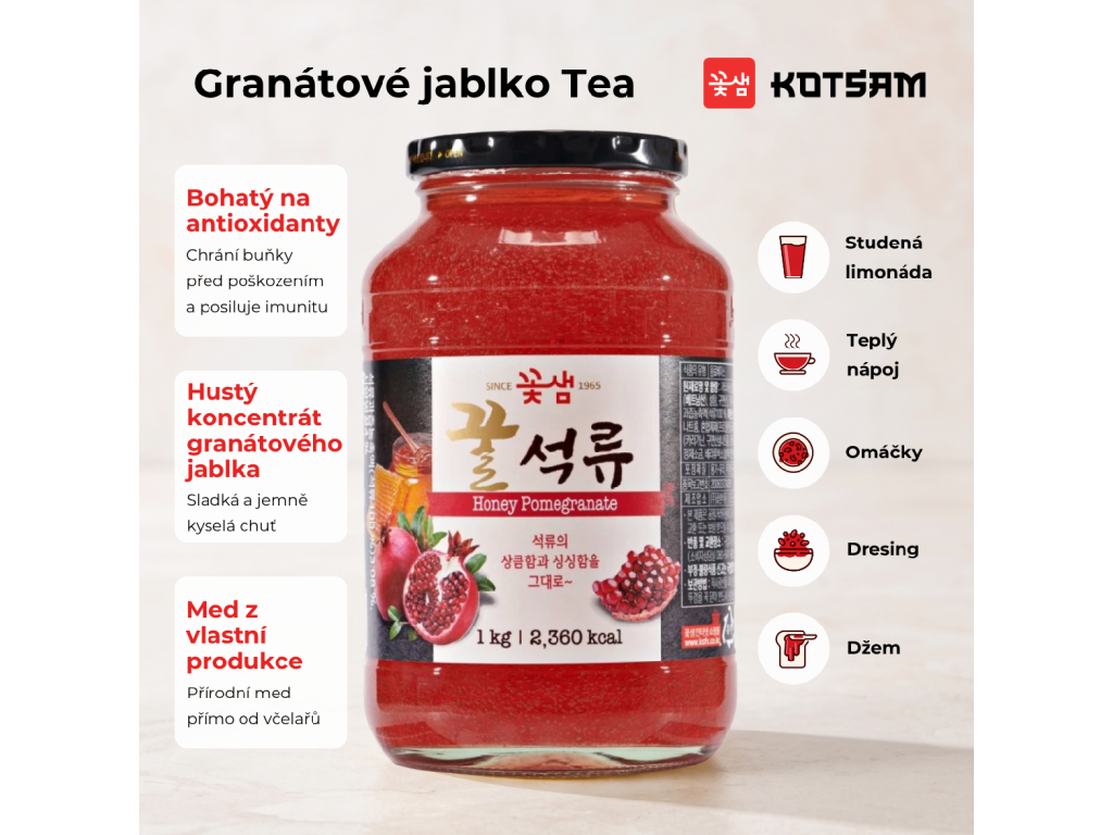 Granátové jablko čaj Kotsam s bohatým obsahem polyfenolů a vitamínu C,