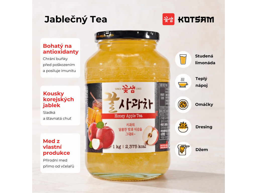 Od roku 1965 je Kotsam tradiční značkou čaje v Koreji. Používáme tradiční korejské metody výroby čaje a přírodní med z naší vlastní produkce k vytvoření chutných a zdravých čajů. Užijte si chuť a vůni tajného receptu, který udržuje korejskou tradici.